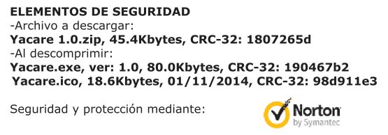 YACARÉ es un programa de aplicación destinado a la recepción y transmisión de datos asincrónicos serie. Opera en código ASCII en el formato clásico de 7 y 8 bits, puede optarse por paridad par o impar; además de seleccionar la velocidad de operacion y el puerto COM, ya se trate de un puerto fijo o de un puerto USB.